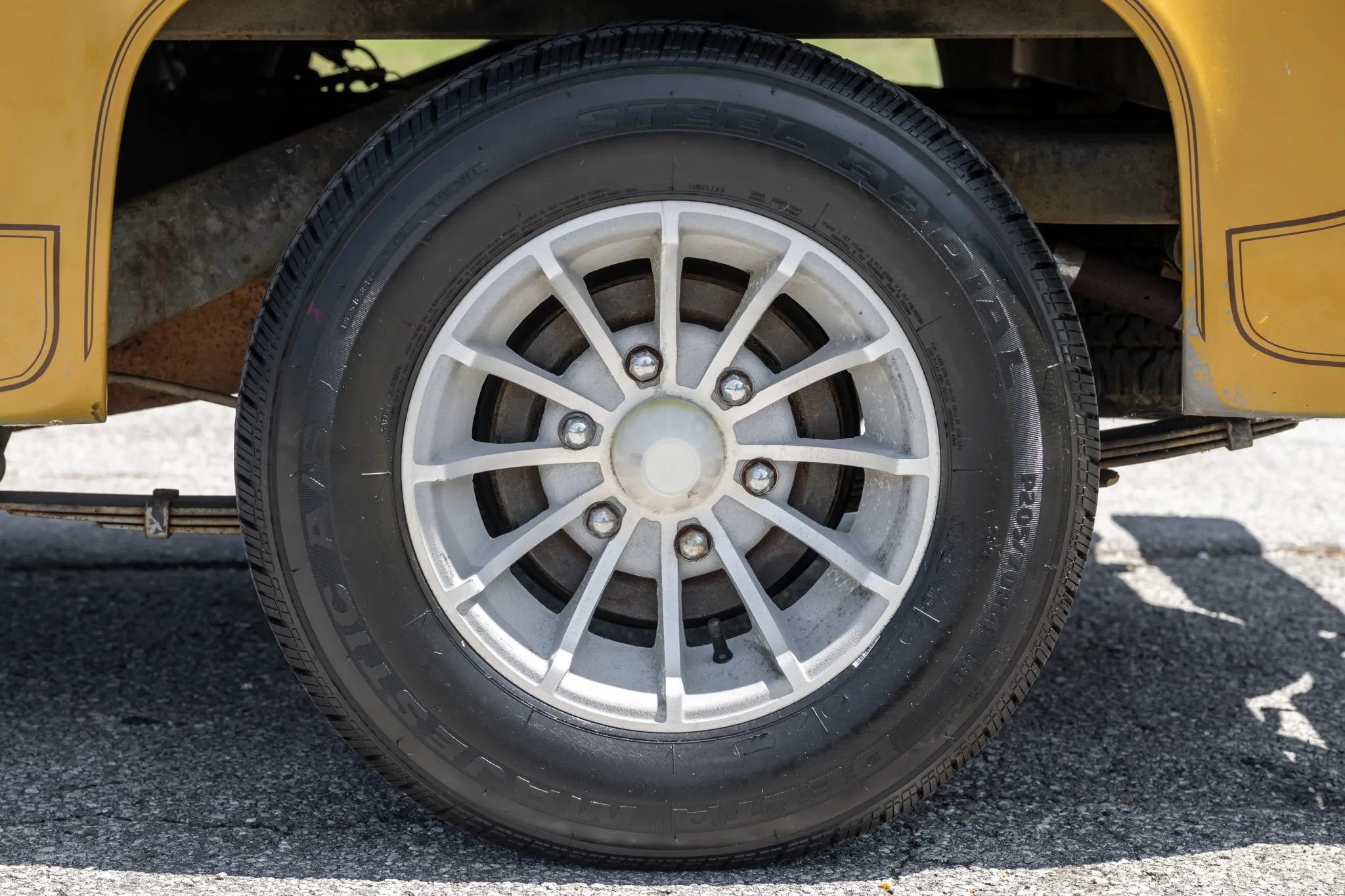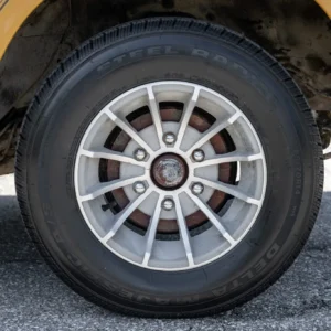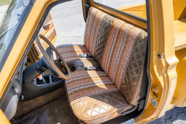 The 14″ turbine-style wheels were with Delta Majestic A/S tires approximately 60 miles ago. The truck was factory equipped longitudinal leaf springs with telescopic shock absorbers as well as recirculating-ball type steering. Stopping is provided by power-assist drum brakes.