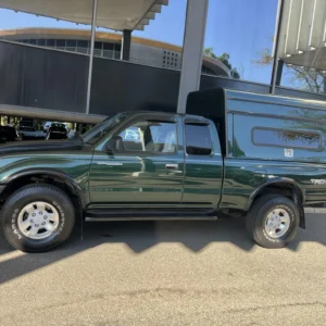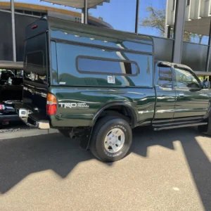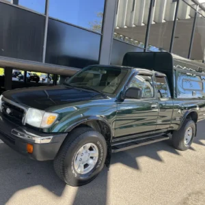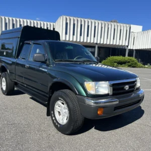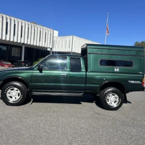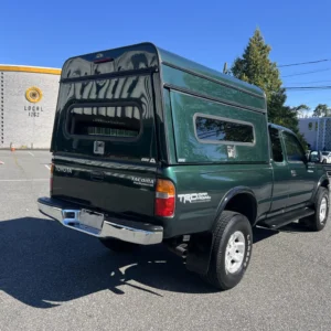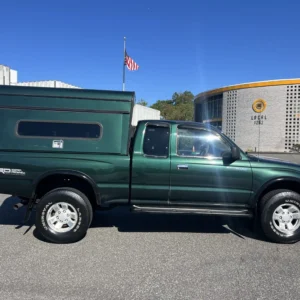 This 2000 Toyota Tacoma PreRunner XtraCab is finished in Imperial Jade Mica over Oak cloth and powered by a 3.4-liter 5VZ V6 that sends power to the rear wheels through a four-speed automatic transmission and a locking rear differential. The truck shows 99k miles and features the TRD Off-Road Package, an A.R.E. camper shell, LED headlights, 16″ six-spoke alloy wheels, air conditioning, cruise control, and a Pioneer touchscreen head unit. This Tacoma is offered by the selling dealer at no reserve in New Jersey with manufacturer’s literature, an accident-free Carfax report, and a clean Maryland title.