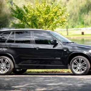 This 2013 BMW X5 xDrive50i is powered by a twin-turbocharged 4.4-liter V8 that drives all four wheels through an eight-speed automatic transmission and an xDrive all-wheel-drive system, and it was acquired by the seller on BaT in August 2025. Approximately $13k of subsequent work included the installation of ceramic window tinting and black kidney grilles along with replacing the left-front hub and output shaft, right sway bar end link, right outer CV boot, front thrust arm assemblies, crankcase ventilation lines, air ducts, and a turbocharger vacuum line. Finished in Black Sapphire Metallic over beige perforated Nevada leather, the truck is equipped with the M Sport package, xenon headlights, 20″ Style 333 wheels, heated and ventilated power-adjustable front seats, cruise control, and quad-zone automatic climate control. This E70 X5 has 77k miles and is now offered no reserve with recent service invoices, a Carfax report, and a clean Pennsylvania title in the seller’s name.
